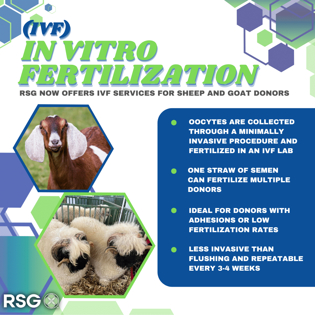 RSG specializes in advanced reproductive services for small ruminants, offering In Vitro Fertilization (IVF) to help producers accelerate genetic progress, preserve valuable bloodlines, and address donor-specific challenges.