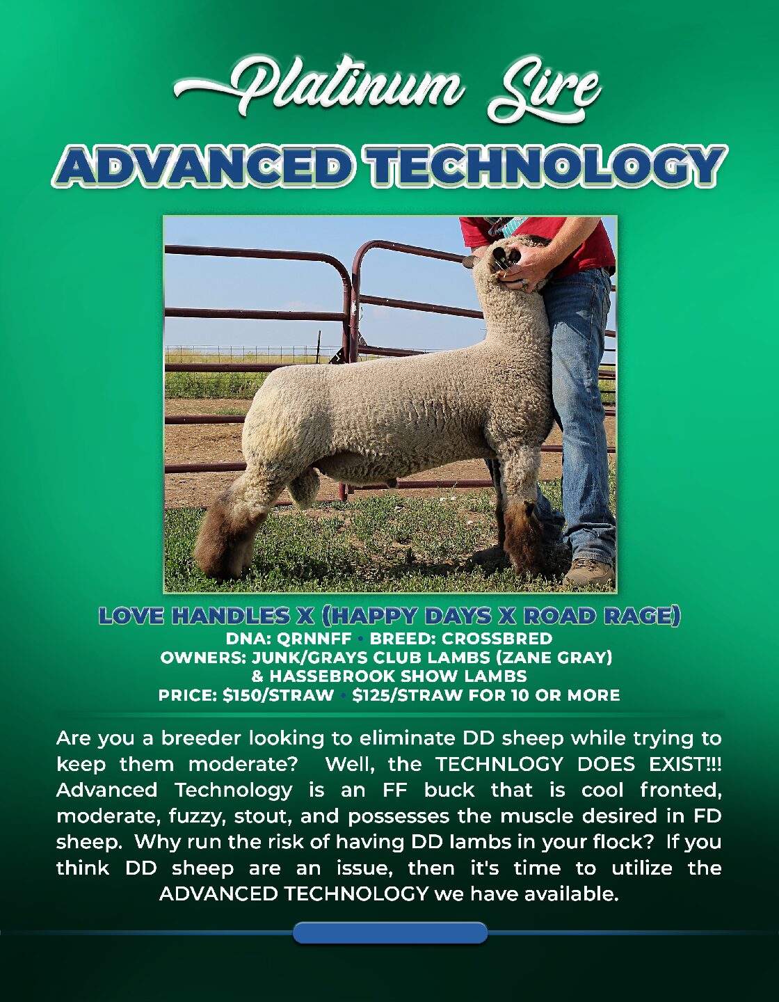 Are you a breeder looking to eliminate DD sheep while trying to keep them moderate? Well, the TECHNLOGY DOES EXIST!!! Advanced Technology is an FF buck that is cool fronted, moderate, fuzzy, stout, and possess the muscle desired in FD sheep. Why run the risk of having DD lambs in your flock? If you think DD sheep are an issue, then it’s time to utilize the ADVANCED TECHNOLOGY we have available.