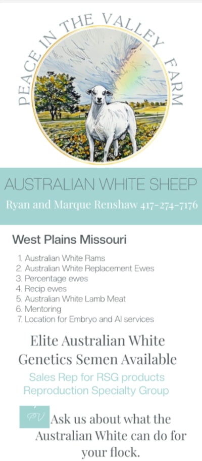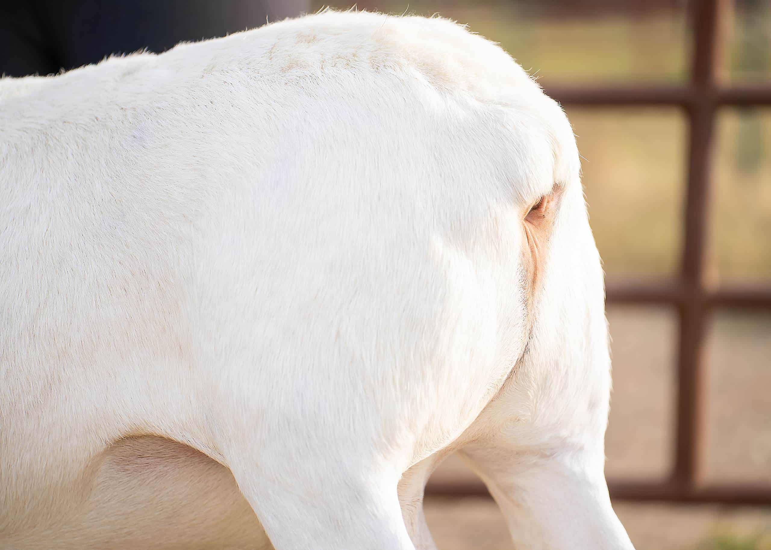 Big Shot is a yearling full blood Australian White. He is registered in the AAWSBA. He is one of the Elite Rams in the United States. The Australian white is known for explosive growth rates, top of the line meat qualities, parasite tolerance, mothering ability, and so much more. The Australian white is a total package of every quality producers look for in a sheep. The highest selling point is they can do it all on forage alone. Contact RSG to secure the future of your breeding season.