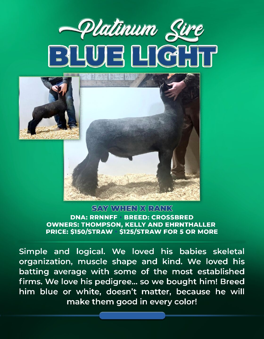Simple and logical. We loved his babies skeletal organization, muscle shape and kind. We loved his batting average with some of the most established firms. We love his pedigree….so we bought him! Breed him blue or white, doesn’t matter, because he will make them good in every color!