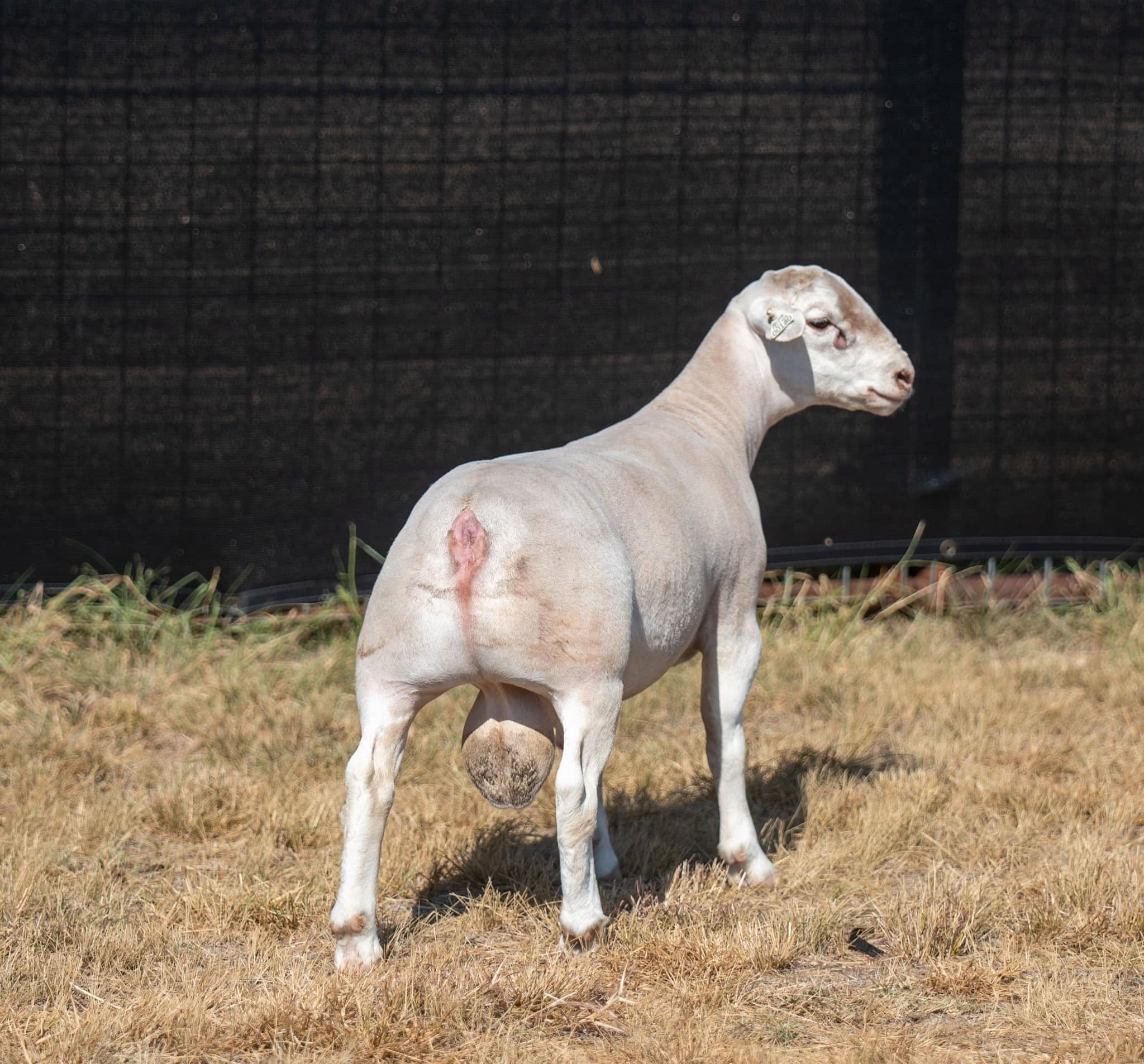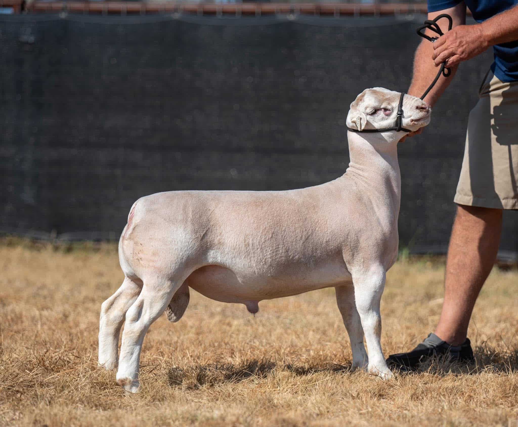 Boss Hogg is one of a kind! Finding a ram with the top shape he has with the levelness across the back into his loin shape makes him a unique specimen. He has great rib shape to match the industry’s demands. Powered up with the eye appeal the dorper breed is looking for. He will work on the wether side and the breeding side.”
