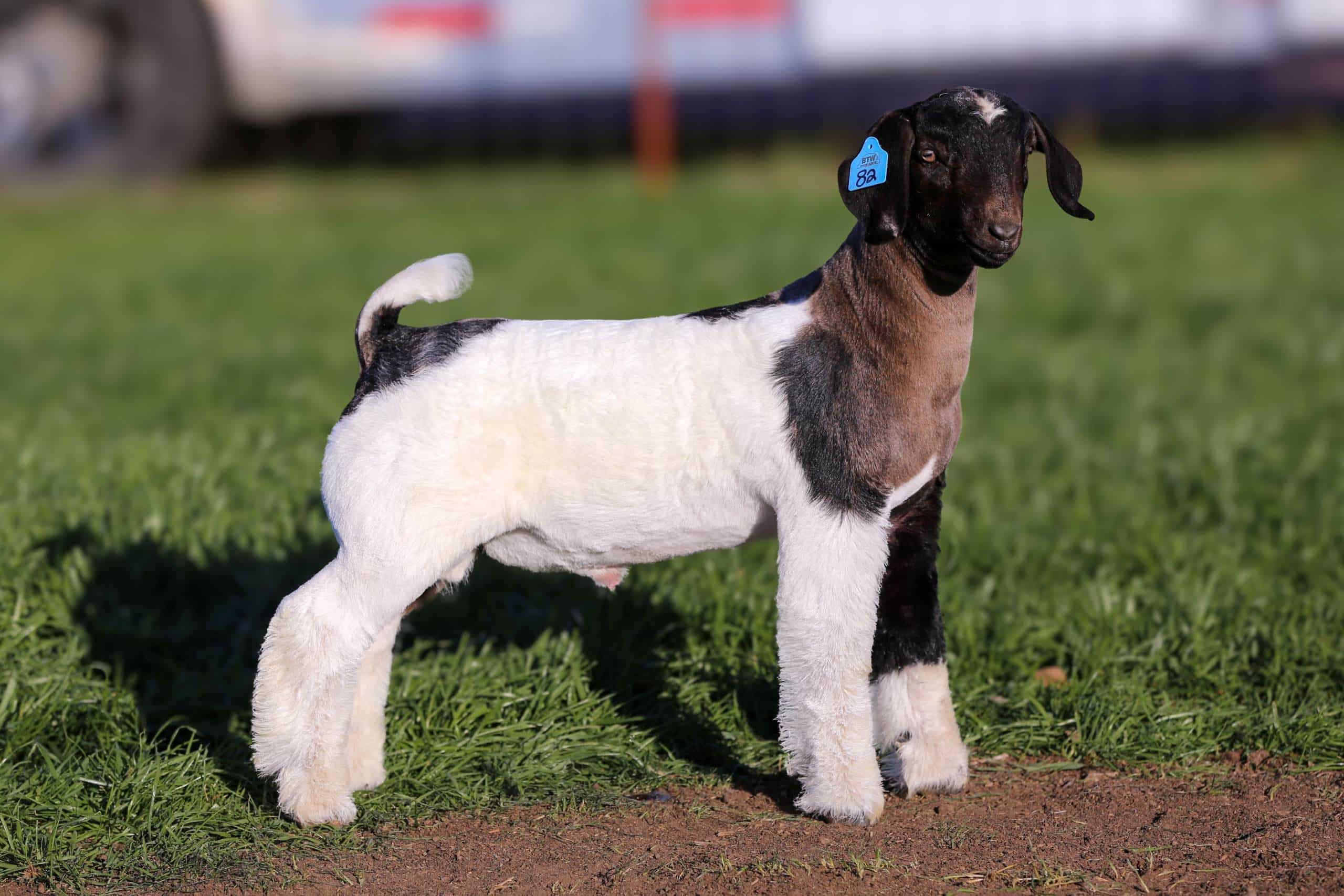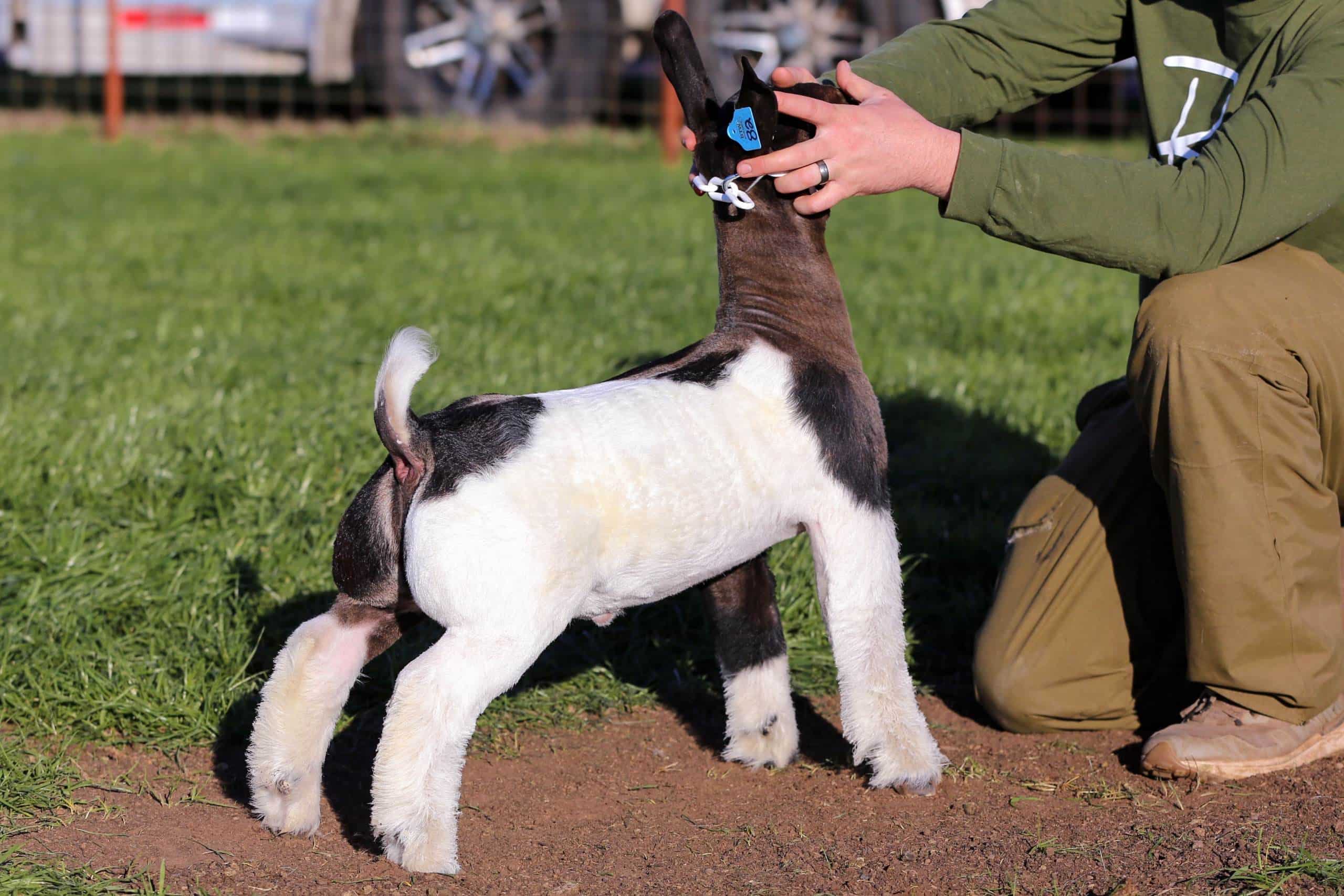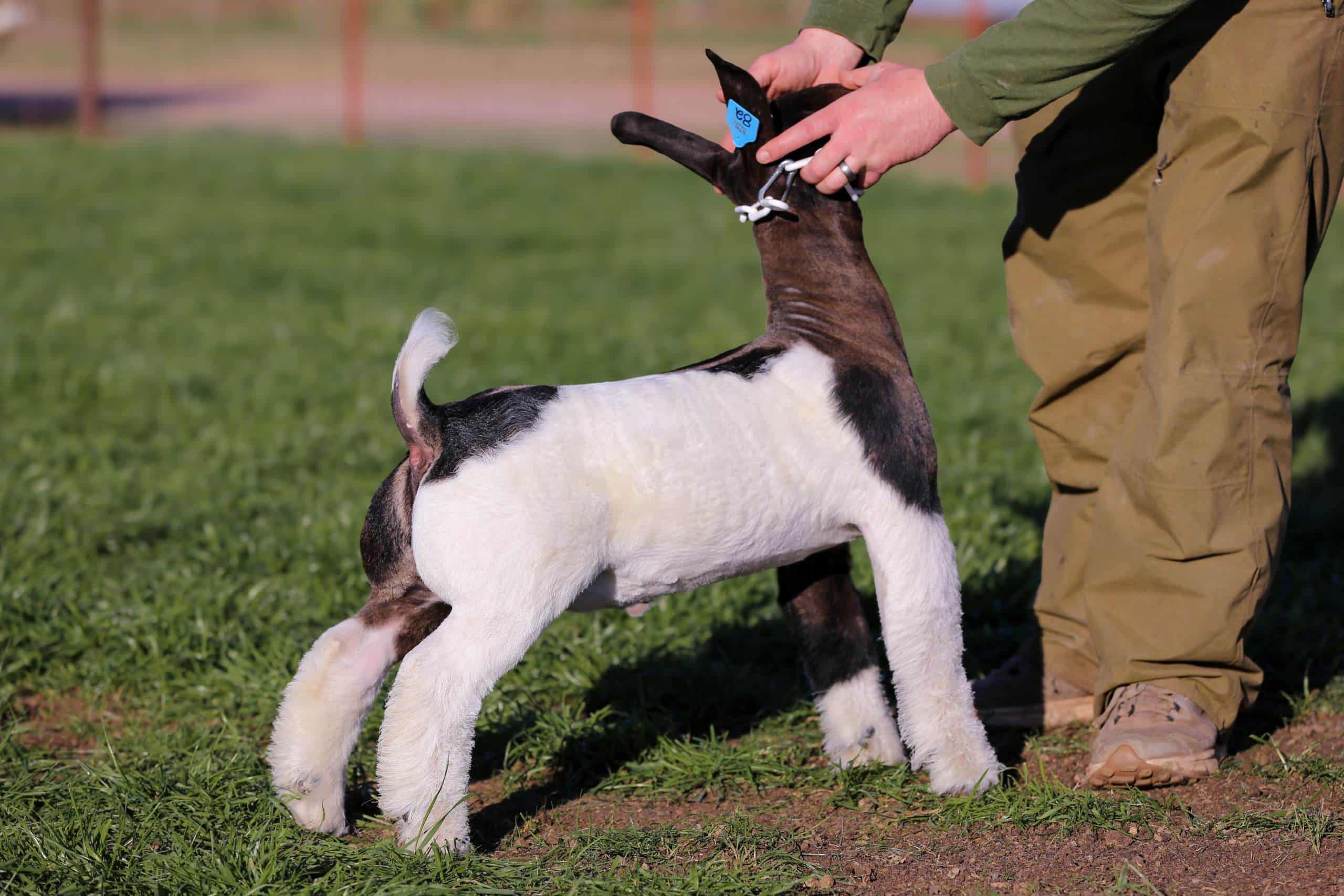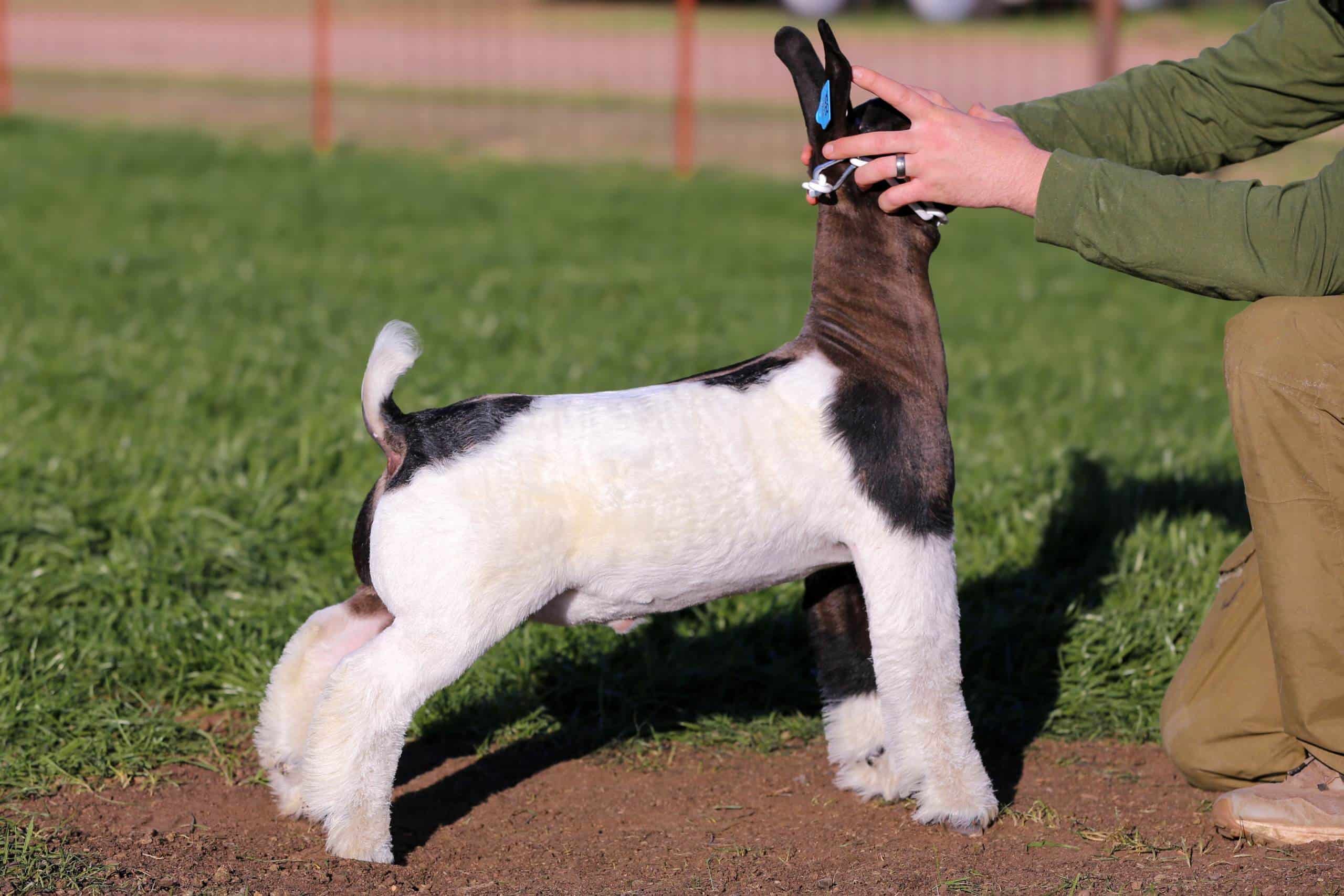 BTW Bipolar is one very special creature. His color pattern grabs your attention but it’s his build, muscle shape, and movement that sets him apart. This one is explosive to the touch and smooth as glass in his transition. Daddy Issues has had a great run with wins that include Grand Champion Market Goat and Grand Champion Doe at the 2024 American Royal. We lost Easy Bake after his 1st kid crop. In that group of kids, he produced the Grand & Reserve Grand Champion Market Goat at the 2023 San Antonio Livestock Show & Rodeo. We knew his wethers were good but what we underestimated was the Doe POWER he produced. That year out of our Top 45 yearling donors, Easy Bake sired 25 of these Elite Females. The dam of Bipolar is a standout female in our flush program. He is SPECIAL and he could be the buck that elevates your program as well!