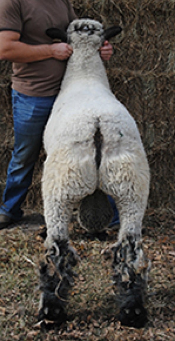 When we saw this specimen at Goodwin’s, we knew he had a place in our program. If you’re a fan of sheep that can look the part in big show rings, he should have a place in yours too. This one’s rib cage design is ideal, his shape is impressive and he walks around the pen with an elegance that is hard to find. Bone and shag aren’t a problem with this guy, either. You can win county fairs just by over-powering the competition, but the majors require a show ring look, and Good Times has it. Breed with confidence.