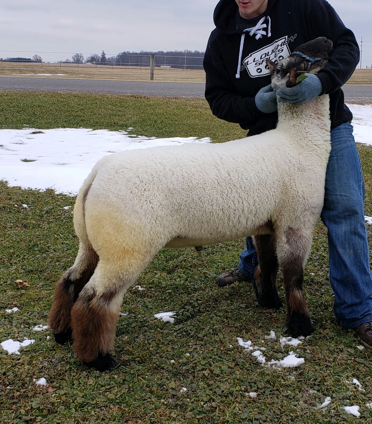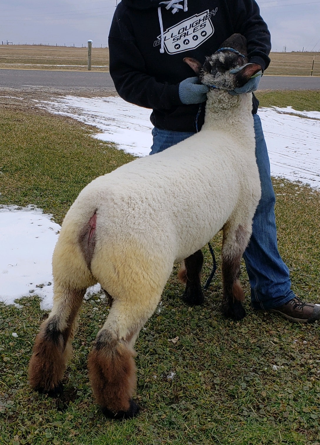 A flush ram purchased from Justin Nathan, Level Up carries a big grooved top, round rib, short flat shoulder with a big hip. His 2020 lamb crop exceeds our expectations, some of the best we’ve raised; lambs with more shape, elevated front ends and big tops. We used Level Up on several types and bloodlines and he clicked. You can’t go wrong here.