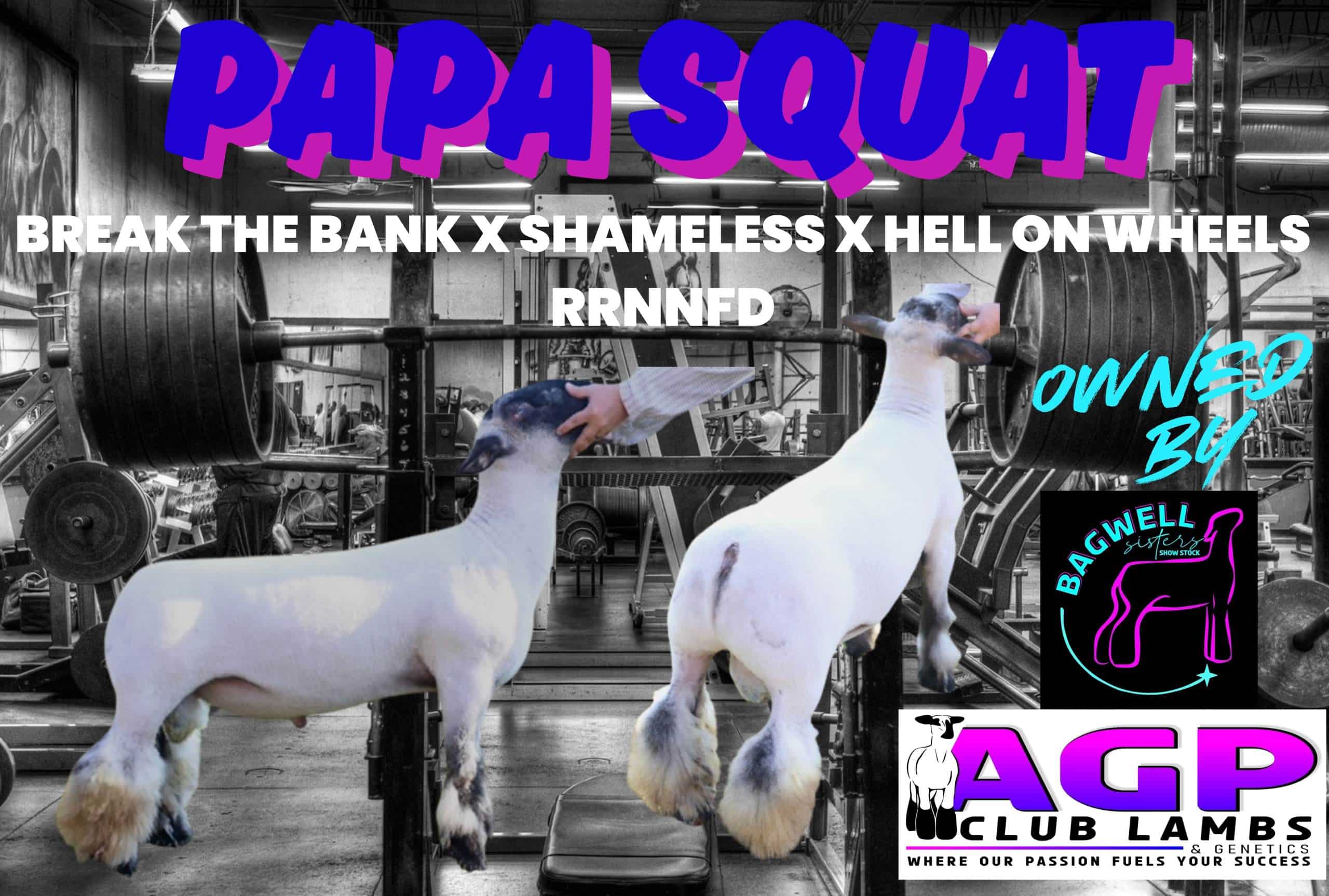 Papa Squat is a 2024 lamb raised by Shelli Elton Young and Young’s Sheep Co. He is a Break The Bank Son X Shameless X Hell On Wheels and is one of the freakiest FD that we have ever seen. Starting from the ground up he stands square, big footed and boned, shag for days, enormous pin set and high hipped, wide and Defined loin edge. Carries his soundness through his lower rib making him extreme wide from top to bottom in his mid section but is extremely shallow in his chest floor while still carrying a enormous amount of width in his shoulders and fore chest. We are looking forward to seeing the impact he is going to have over the next several years not only for our programs but yours as well.