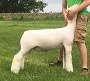 Pure White sired the Champion Dorset at Louisville, Aksarben, and Minnesota State Fair. He sired the Reserve Champion Dorset at Denver, Iowa State Fair, as well as the Champion Speckle at Minnesota State Fair and Reserve Speckle at Iowa State Fair – all in his first lamb crop!