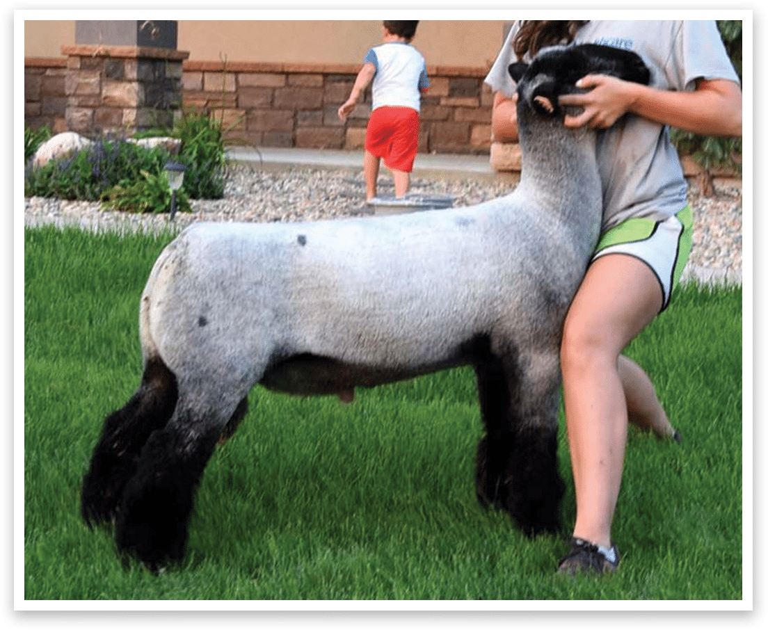 Sundown is our Keeper Ram that Allen Show Lambs purchased half interest of in 2018. His first lamb crop, he sired the Grand ewe at Kansas State Fair, KJLS, Reserve Ewe at Oklahoma State Fair, and Reserve Grand Ewe at Arizona National. Sundown makes them crazy FUZZY, crazy fronted, with huge hips and rumps.