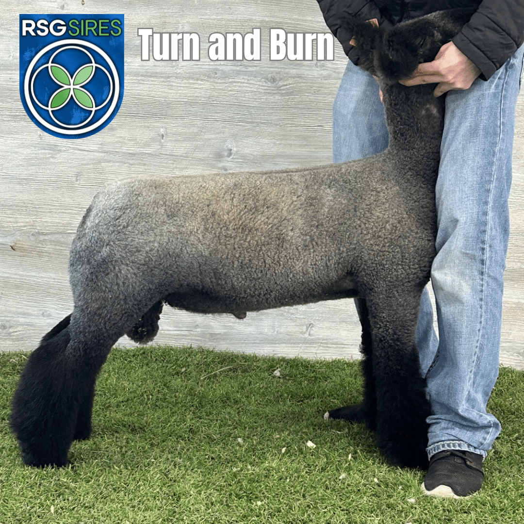 Turn was one that had us excited from the word go when he hit the ground this winter. He has teh extras that are being chased hard in the ring right now of shape, dimension, square loined and backed while standing on huge feet and legs. One that we feel could work on a large set of different types of ewes across the industry. His mother, Wizard’s full sib sister, will make a hard right turn into the donor pen and will be a mainstay in our program for years to come. Just like Mavrik said, fights on, it’s time to Turn and Burn!!!!
